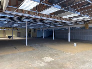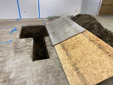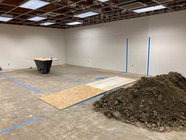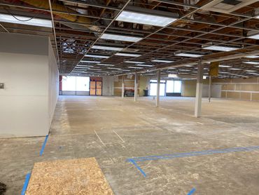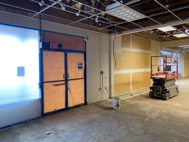 04/07/23 - More demolition happened these last two weeks. Our space is pretty well cleaned up except for the pit that was being dug out. This is back in the kitchen area near where our water heater will go so it most likely has something to do with plumbing or drainage. Also, the old McCann's chocolate counter by the front doors was removed.