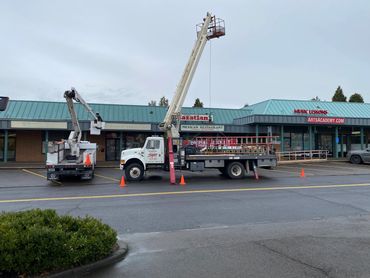 03/14/24 - The crew from Advanced Signs was out early this morning to finish installing the rest of our exterior signage. You can now see us up on the pylon sign right off of highway 99w. They also got the corridor signs installed. All that's left to do now is get the power running to the new light box on the roof line and we will be all set. This will be done when the electricians come out to wire the HVAC units.