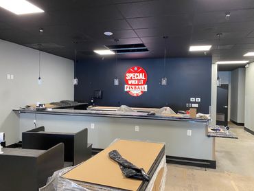 Today we also walked the space with our contractor to go over the punch list items. These touch ups should be taken care of next week as well. Once this is all done, we can get the rest of the games brought in. Really, all that will be left to do is get our final inspection and our occupancy permit then we can open.