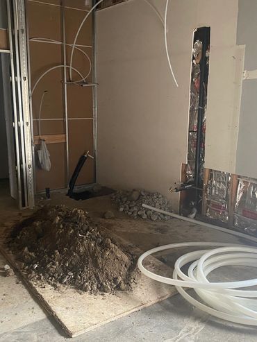 10/03/23 - The plumbers were back today and got the water connected from the main line. The area in the pictures below is where the hot water heater will be located.