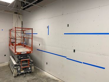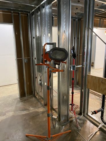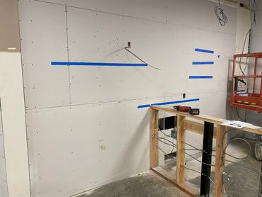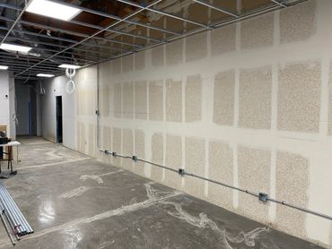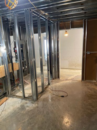 10/27/23 - The initial inspection for the electrical boxes was a success, so now the drywall hangers can close up the walls and begin the mudding and taping. There is still some electrical work to be done with the overhead lighting in the bathrooms, kitchen, and office. It is getting close though..