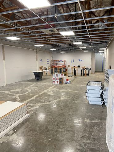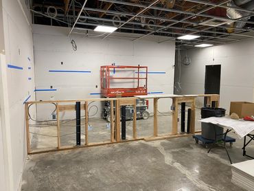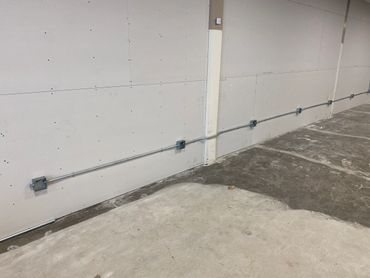 10/11/23 - We have lights! The overhead lights over the gaming area and bar are now all installed and power on. It is pretty bright in there but once the dimmer switches are installed, we will be able to have just the right amount of light. I talked to the electrician about the strategically placed outlets for the televisions and signs and he was going to begin working on installing the boxes over the next couple of days.